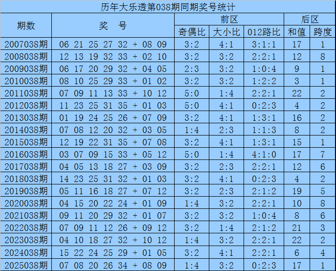 袁军师体彩大乐透第2026038期历史同期奖号分析: